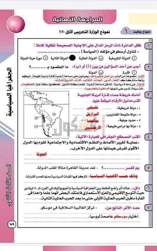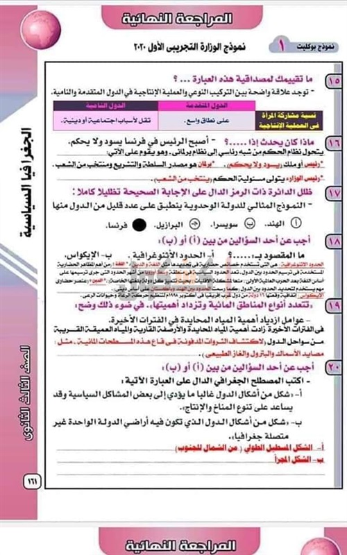 ويقدم كشكول لطلاب الثانوية العامة شعبة أدبي إجابة النماذج الاسترشادية في مادة الجغرافيا حيث من المقرر أن يؤدي طلاب الثانوية العامة، غدآ، امتحان الجغرافيا لطلاب الشعبة الأدبية، وامتحان الكيمياء للطلاب الشعبة العلمية، على مستوي الجمهورية، وسط اجرءات امنية واحترازية مشددة، بسبب انتشار جائحة فيروس كورونا المستجد.