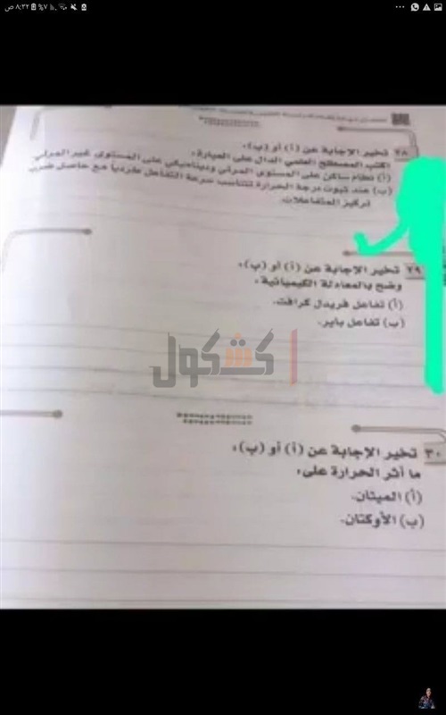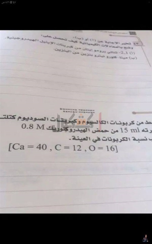 نشرت عدد من صفحات الغش الإلكتروني، امتحان من داخل أحد اللجان، يزعمون أنه لمادة الكيمياء، الذي يؤدونه الطلاب حاليًا باللجان التعليمية.