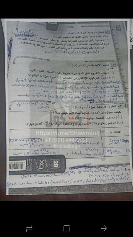 شاومينج بيغشش ثانوية عامة 2020 ينشر إجابات امتحان الكيمياء