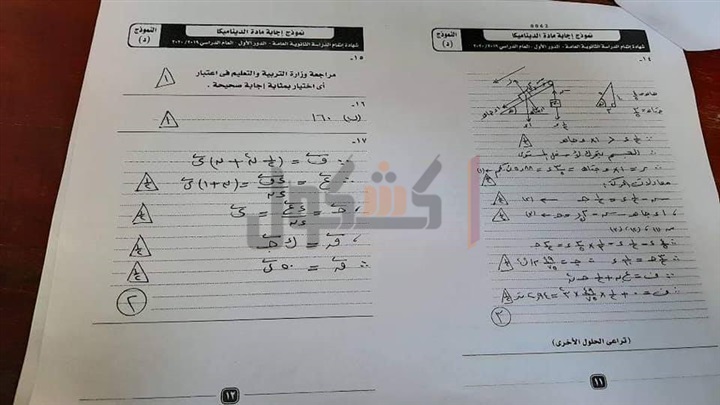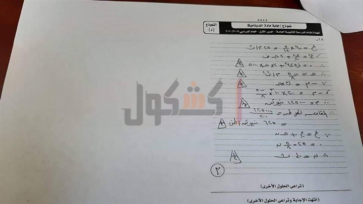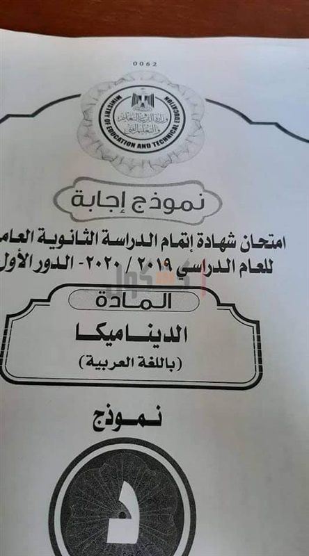 ننشر نموذج إجابة مادة الديناميكا لطلاب الثانوية العامة 2020