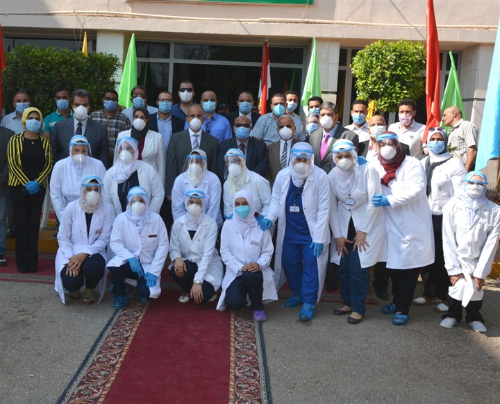 حرص شعلان، علي إلتقاط صورة تذكارية مع الفريق الطبي وطاقم التمريض من العاملين بمستشفى القلب والصدر ومستشفي الأطفال، حيث قدم لهم الشكر والتقدير علي شعورهم بالواجب الوطني وتضحياتهم الغالية في سبيل تقديم رعاية طبية وعلاجية لائقة ومتميزة للمرضى مصابي فيروس كورونا .