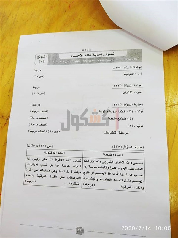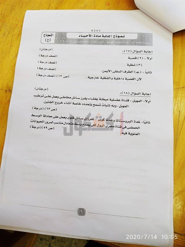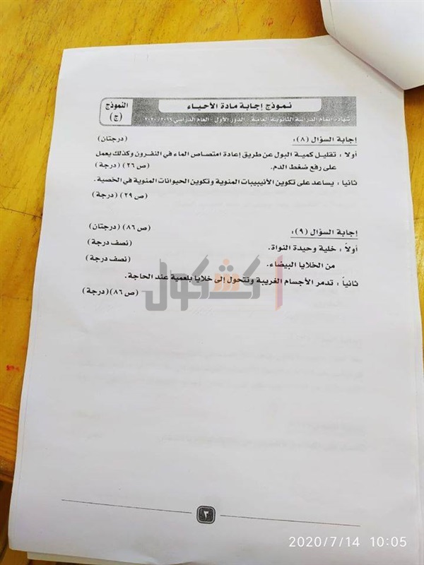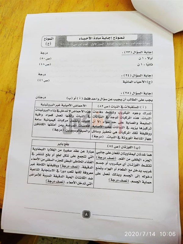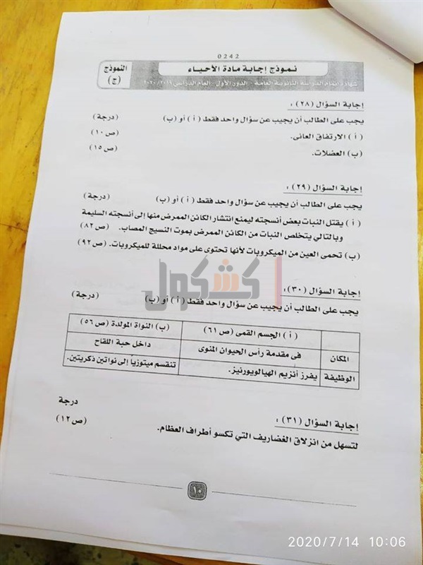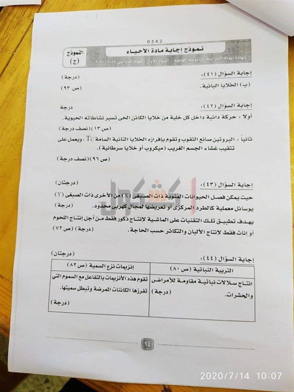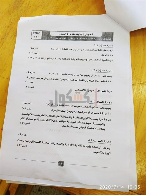 ننشر نموذج إجابة مادة الأحياء لطلاب الثانوية العامة