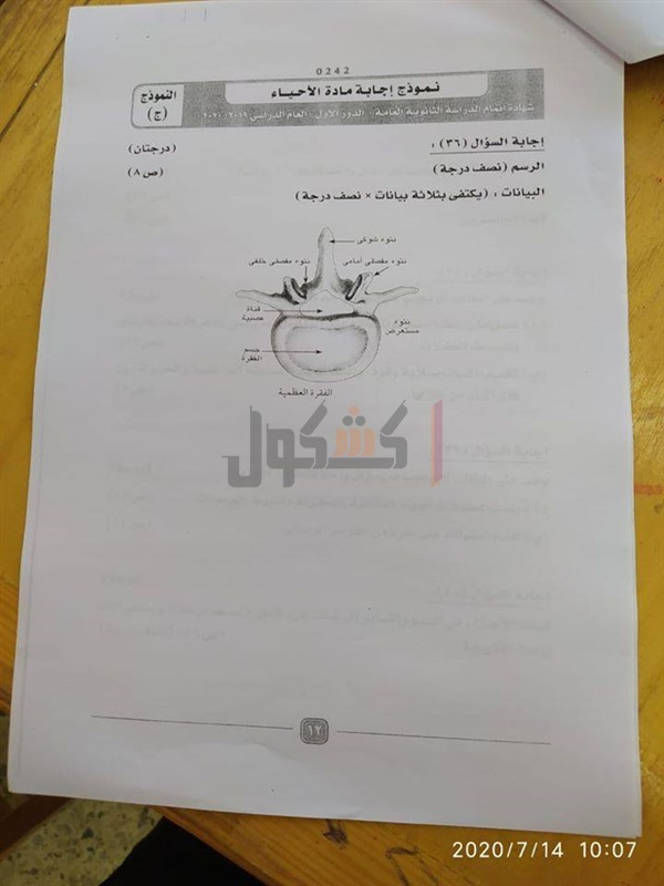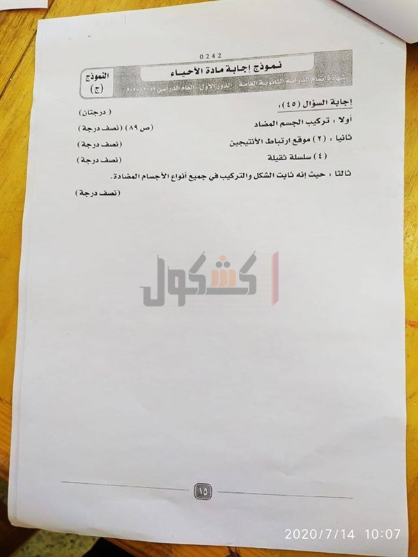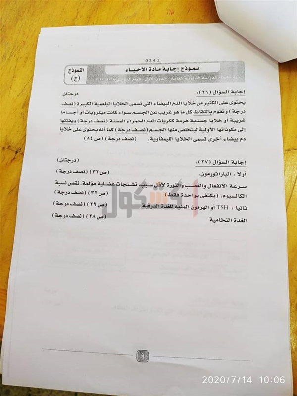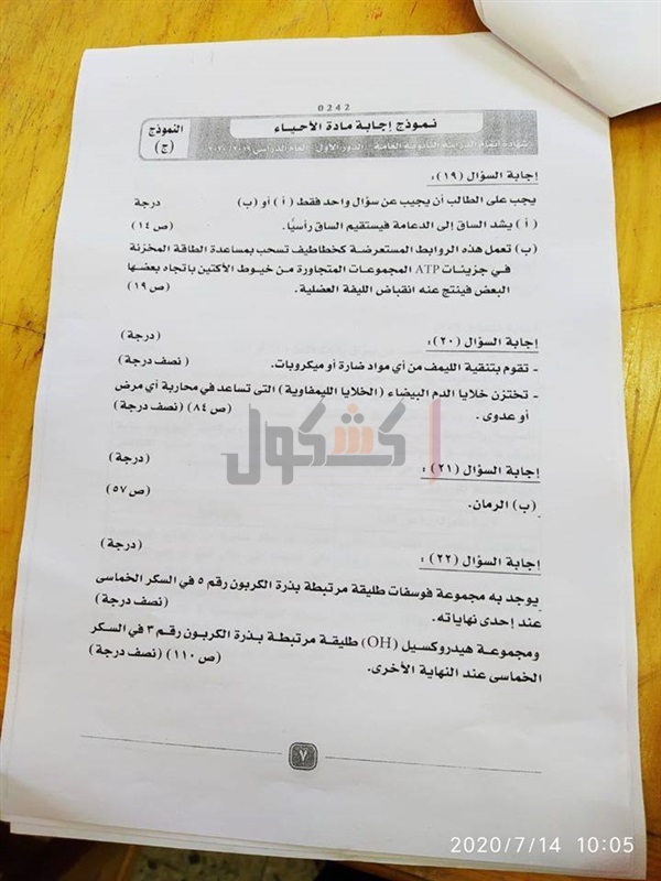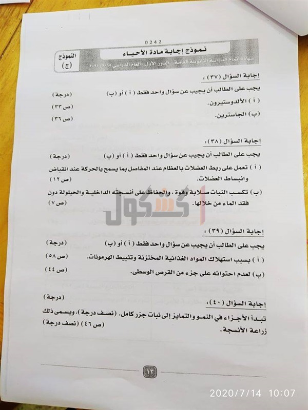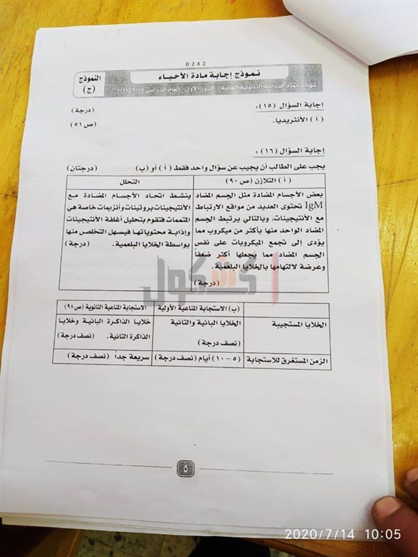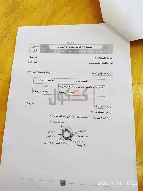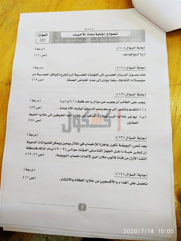 ننشر نموذج إجابة مادة الأحياء لطلاب الثانوية العامة