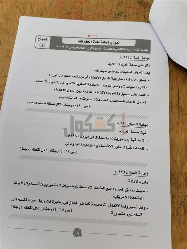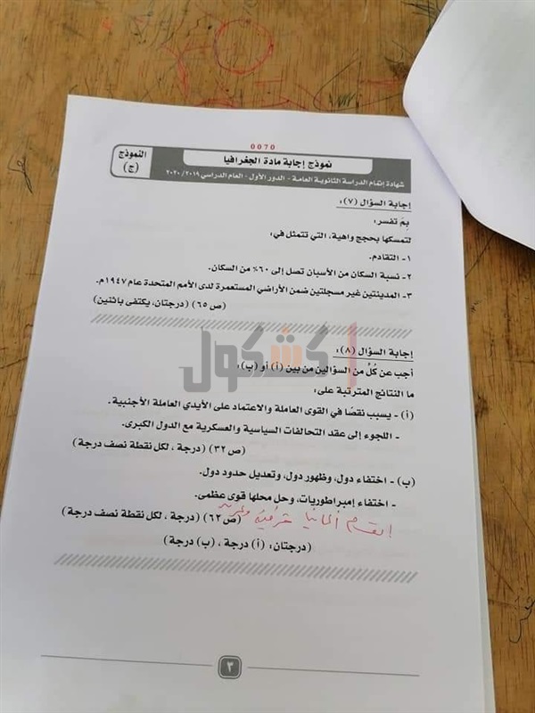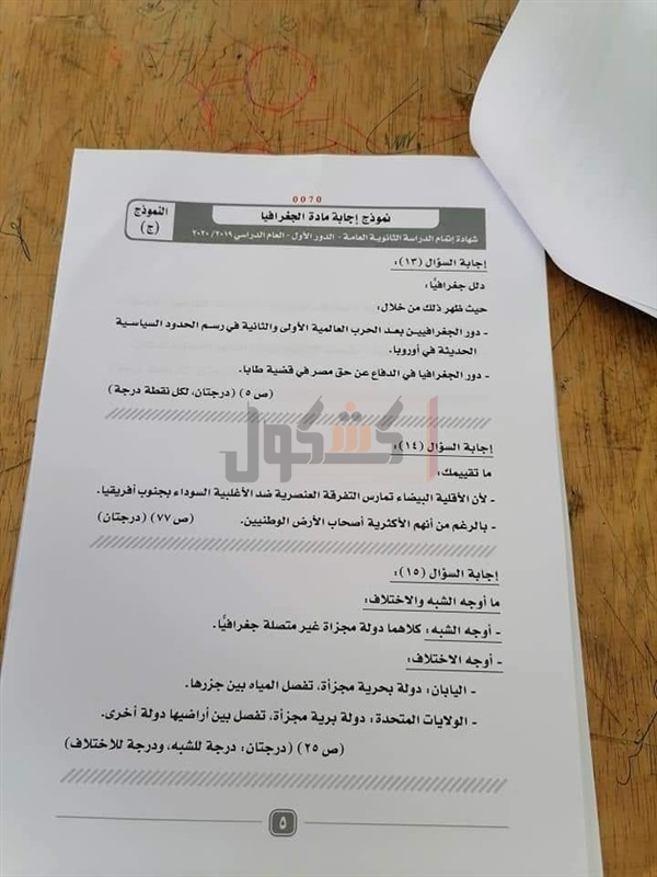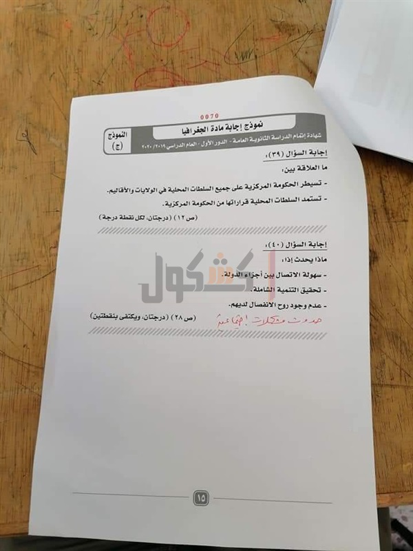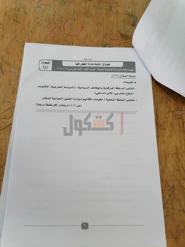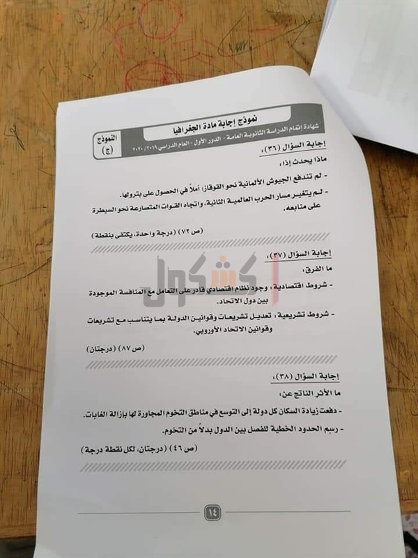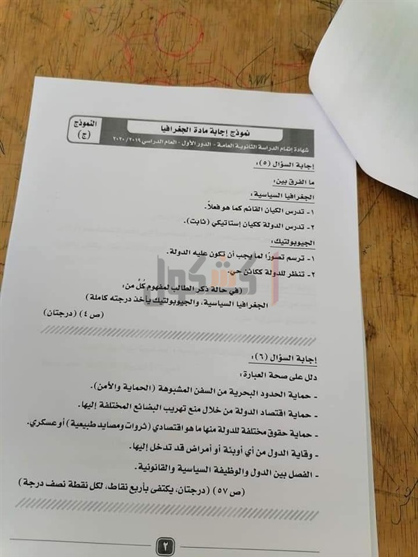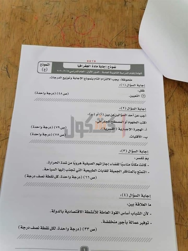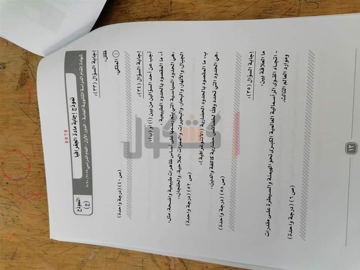 ننشر نموذج إجابة مادة الجغرافيا لطلاب الثانوية العامة