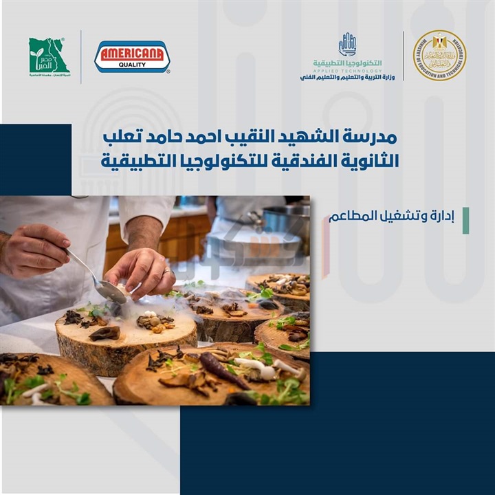 7- مدرسة الشهيد النقيب أحمد حامد تعلب الثانوية الفندقية للتكنولوجيا التطبيقية تخصصات: