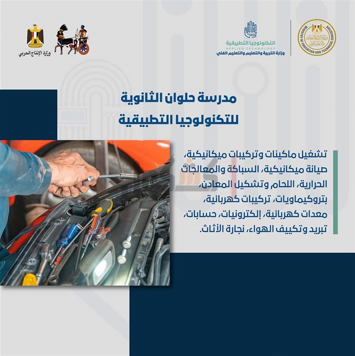 4- مدرسة حلوان الثانوية للتكنولوجيا التطبيقية تخصصات: