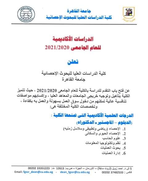 الدراسات العليا والبحوث الإحصائية بجامعة القاهرة، عن فتح باب التقدم للدراسة