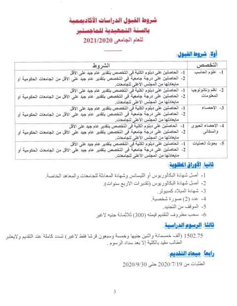 "كشكول" شروط القبول "الدبلومات، والدراسات الأكاديمية للسنة