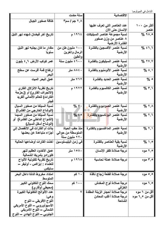 ونقدم لكم اهم الأرقام الخاصة بمادة الجيولوجيا كمراجعة قبل ليلة الامتحان.