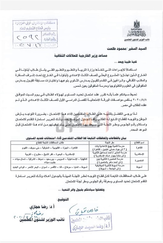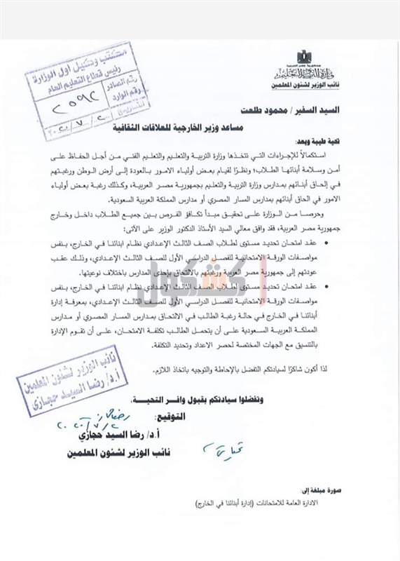 أوضحت وزارة التربية والتعليم والتعليم الفني خلال خطاب رسمي لمساعد وزير
