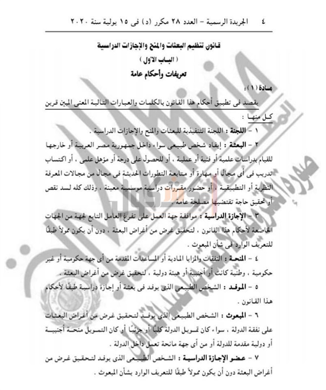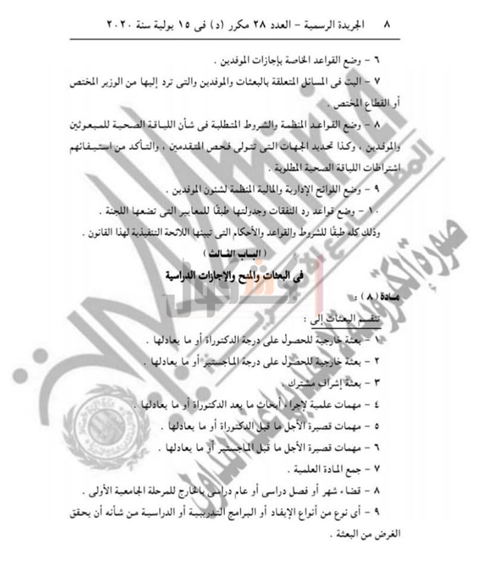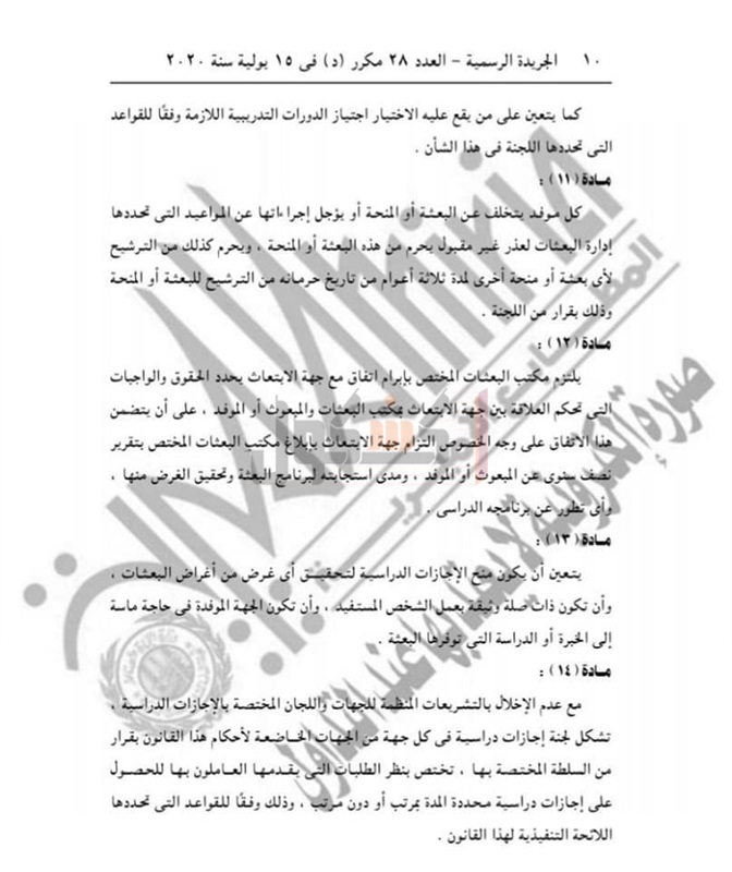 التدريبية أو الدراسية وذلك لضمان مرونة القانون في أي نوع مستجد من الدراسات والبعثات.