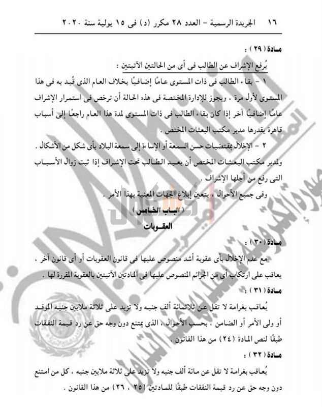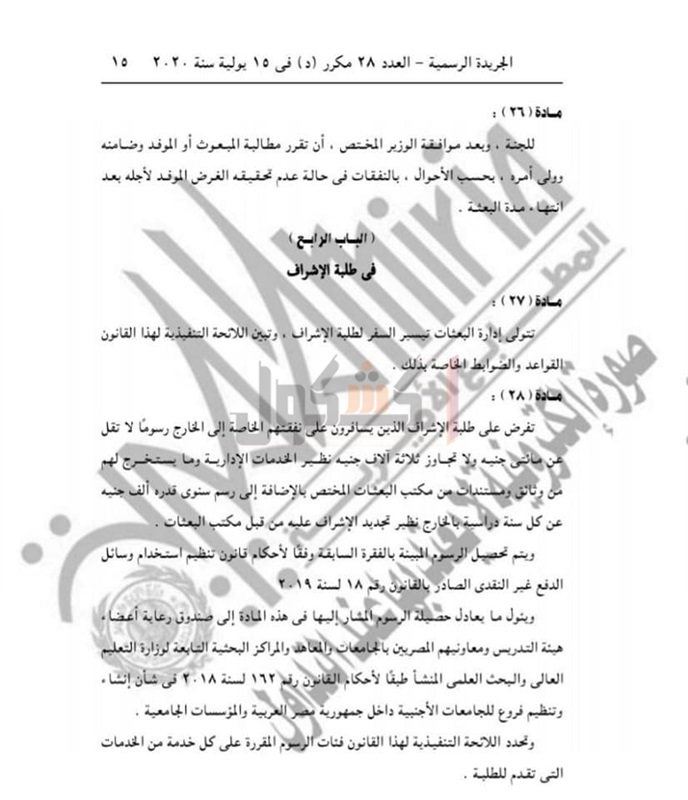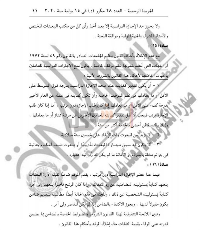 الموفد المتفوق في دراسته للحصول على المؤهل الأعلى وهي أمور لم تكن متاحة في القانون