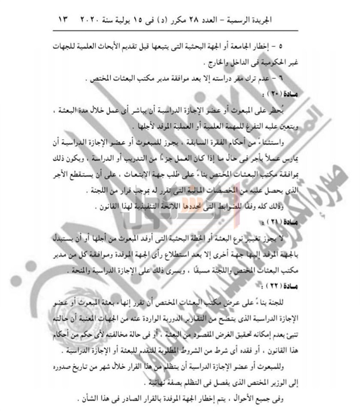 لبرنامج البعثة وتحقيق الغرض منها وهو ما لم يكن متاحا طبقا للقانون القديم وذلك حتى