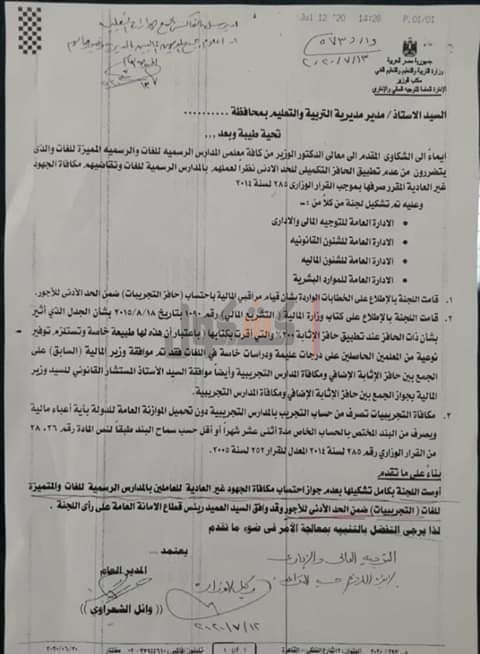 قرار مهم بشأن مكافآت الجهود غير العادية لمعلمي المدارس الرسمية