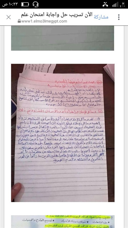 نشرت عدد من صفحات الغش الالكتروني، إجابات لامتحان من داخل أحد اللجان، يزعمون انه امتحان مادة علم النفس، الذي يؤدونه الطلاب حاليًا باللجان التعليمية.