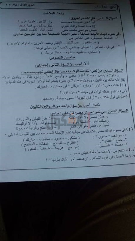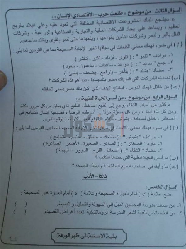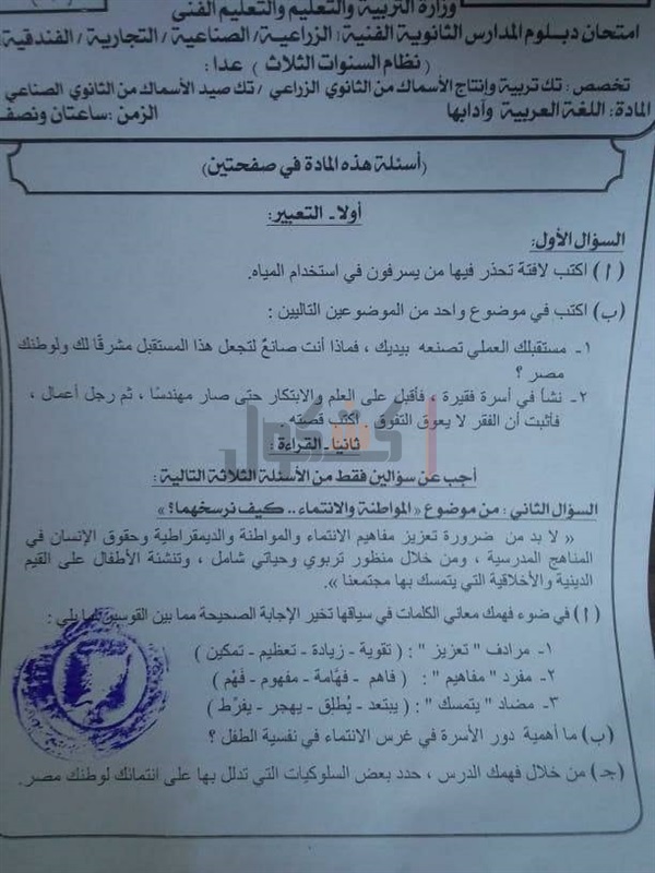 بالصور.. تداول امتحان اللغة العربية للدبلومات الفنية علي السوشيال ميديا