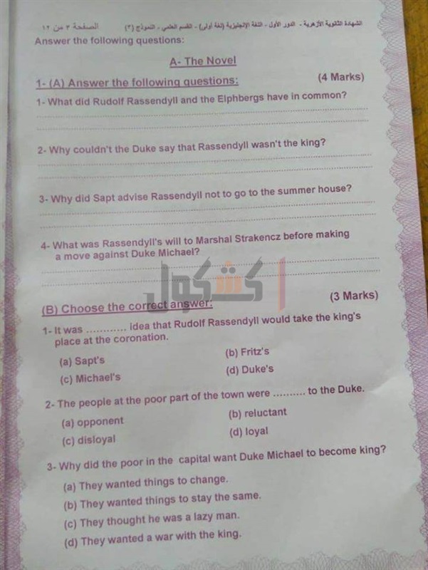 تداول طلاب وطالبات القسم العلمى بالشهادة الثانوية الأزهرية، قبل قليل امتحان مادة اللغة الإنجليزية، وذلك عبر موقع التواصل الاجتماعى تليجرام.