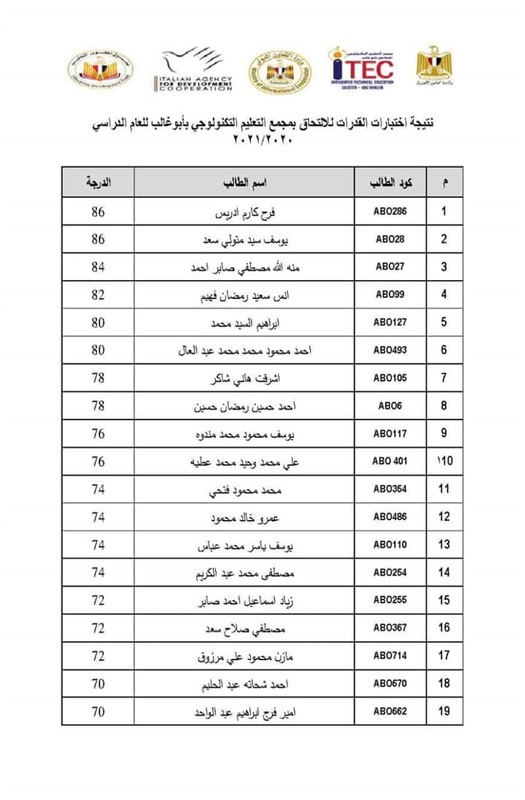 ننشر نتيجة القبول للالتحاق بمجمع أبو غالب التكنولوجي