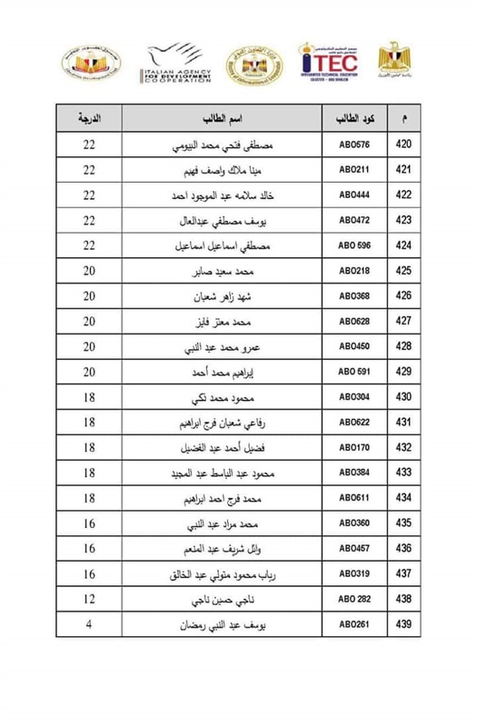 أعلن صندوق تطوير التعليم التابع لمجلس الوزراء نتيجة اختبارات القدرات للطلاب المتقدمين لالتحاق بمجمع التعليم التكنولوجي المتكامل بأبو غالب للعام الدراسي 2020/2021.