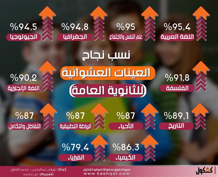 كما بلغت نسب نجاح العينات العشوائية لجميع المواد بالشعبتين "الأديبة والعلمية":
