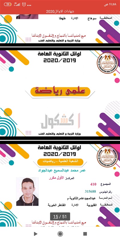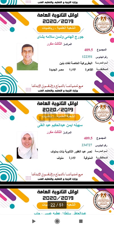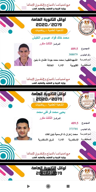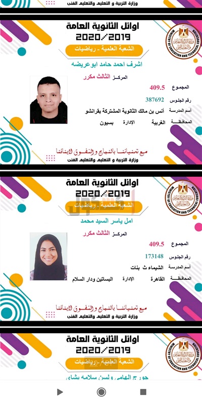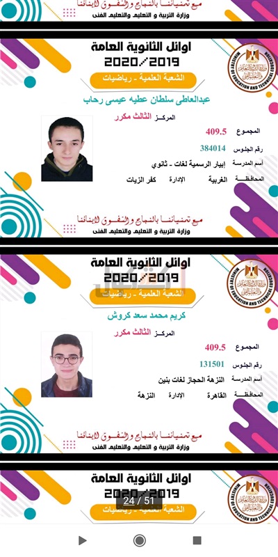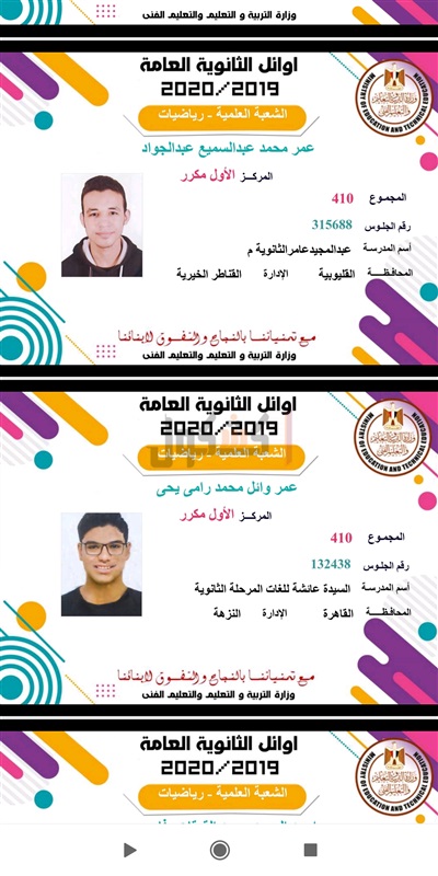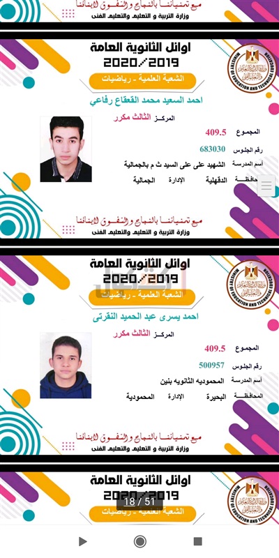 ننشر أسماء وصور أوائل الثانوية العامة "علمي رياضة"