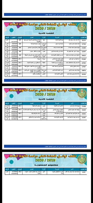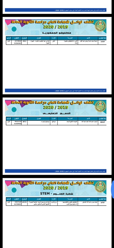 بالصور.. التعليم تعدل كشوف أوائل الثانوية العامة