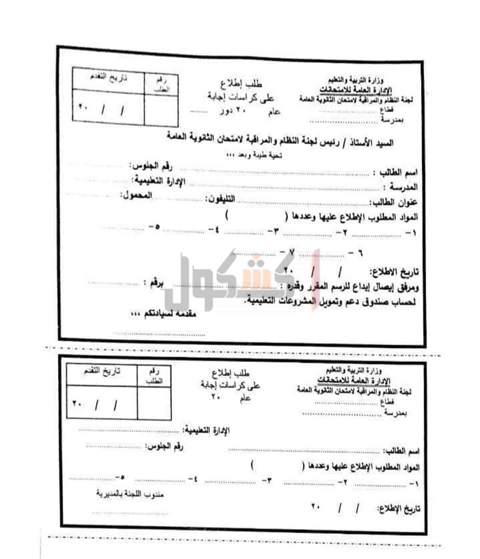 - تقتصر عملية الاطلاع للطالب على صورة ضوئية من كراسة الامتحان وليس الكراسة الأصلية.