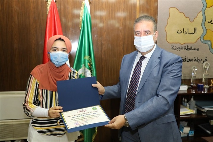 بالصور.. محافظ المنوفية يكرم ثالث الثانوية العامة ويمنحها شهادة تقدير ومكافأة مالية