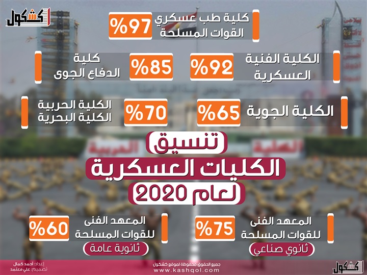 جراف بالانفوجراف.. تنسيق الكليات العسكرية لعام 2020 أحمد كمال السبت 08/أغسطس/2020 - 01:55 م 8/8/2020 1:55:00 PM أرشيفية طباعة facebook twitter whats شارك