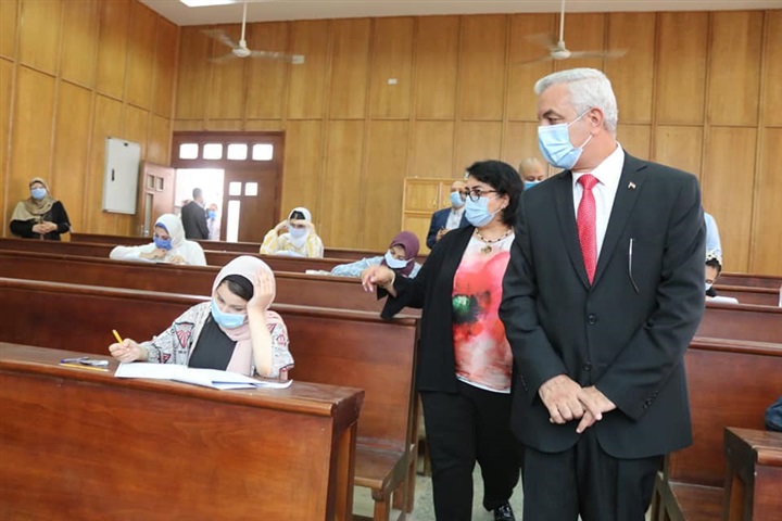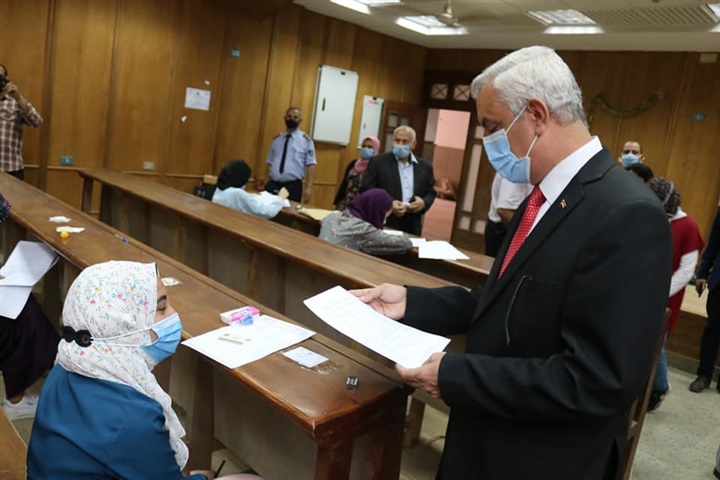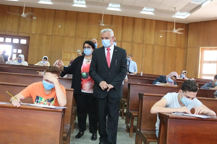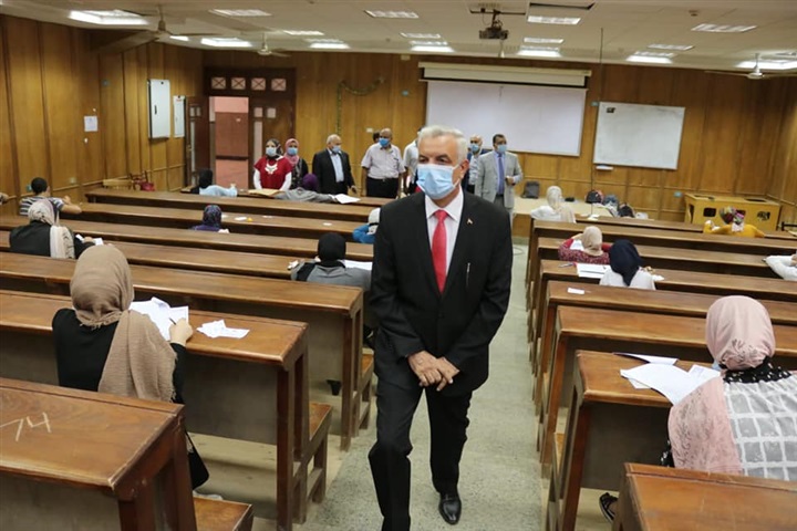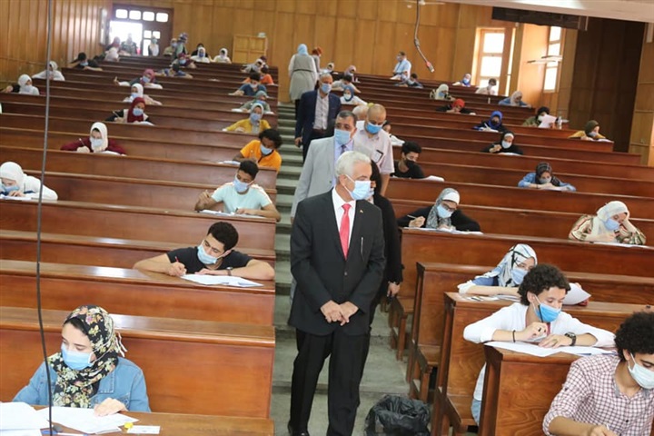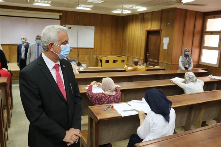 وتفقد رئيس الجامعة لجان الاختبارات وتطبيق كافة الضوابط التى أقرتها وزارة التعليم العالى للتقدم للاختبارات والتسجيل على الموقع الإلكتروني واستلام إيصال التسجيل ودفع رسوم الاختبار، وتفقد تواجد أعضاء هيئة التدريس بالكلية والهيئة المعاونة، وتوزيع أوراق الامتحان، وتقسيم الطلاب على فترتين كل فترة بها ١٥٠ طالب وطالبة لمنع حدوث تكدس.