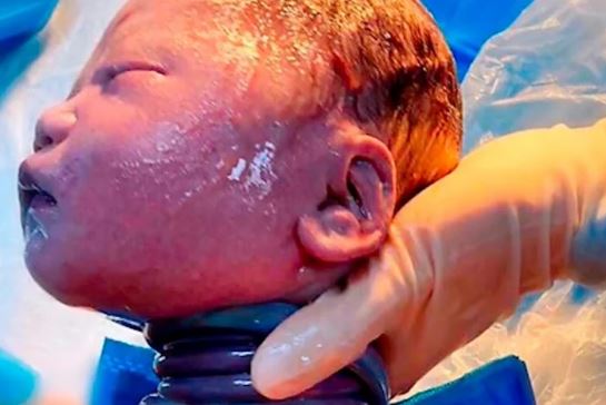 الطفل المولود كان مربوط على عنقه الحبل السري ست مرات و ظن الطبيب أنه سيتوفي و لكن