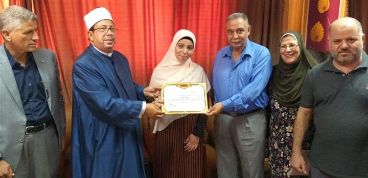 كرم الشيخ عبدالعزيز النجار رئيس الإدارة المركزية لمنطقة المنوفية الأزهرية، الخميس، الطالبة( أماني عاطف عبدالرؤف الشعراوي) لحصولها على المركز الأول على القسم الأدبي على مستوى بنسبة نجاح بلغت 99.21% على مستوى الجمهور في الشهادة الثانوية الأزهرية.