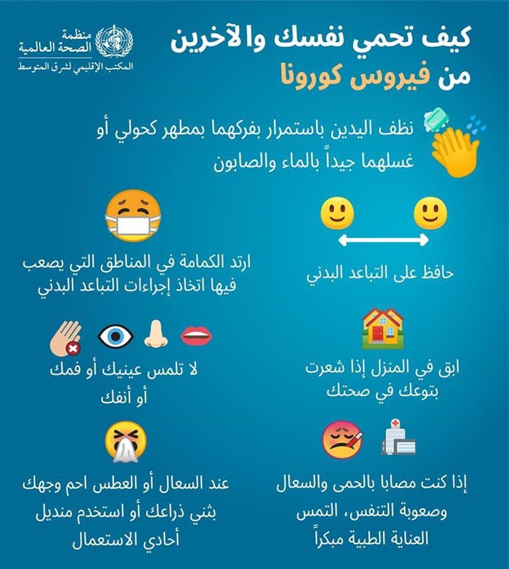 قدمت منظمة الصحة العالمية، نصائح لحماية الأشخاص ومن حولهم من فيروس كورونا المستجد" كوفيد - 19".