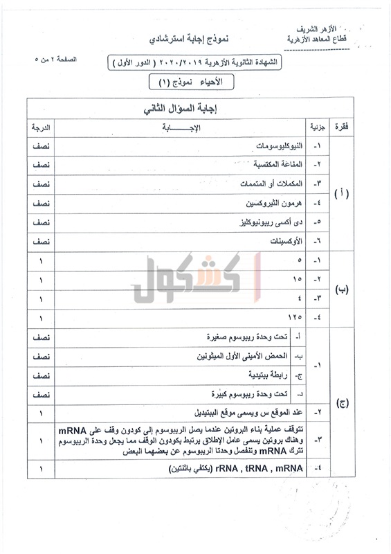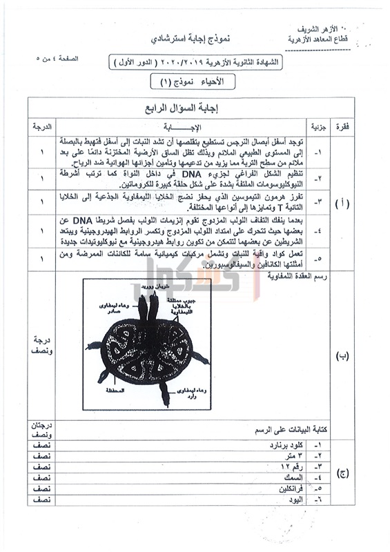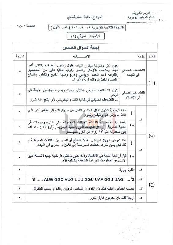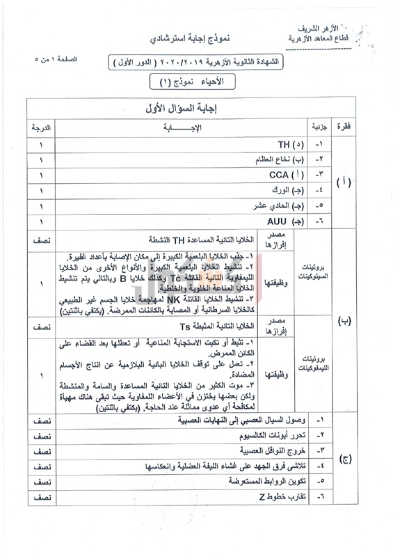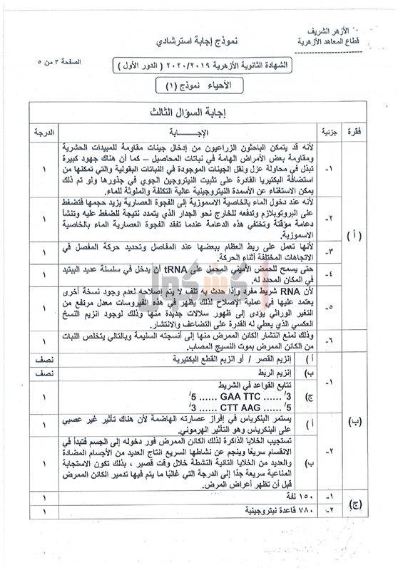 نموذج إجابة امتحان الأحياء لطلاب الثانوية الأزهرية 2020