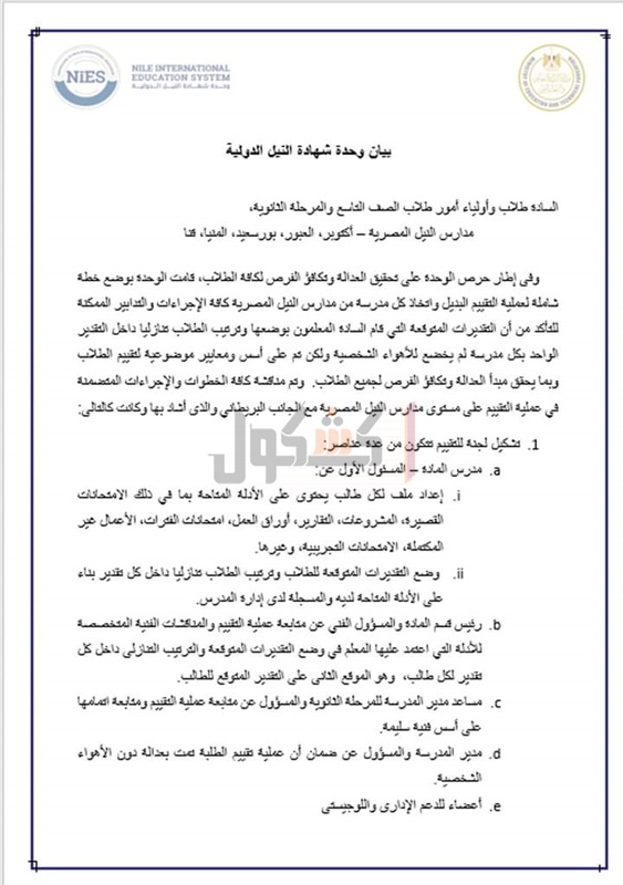 ننشر الخطة الشاملة للتقييم البديل لطلاب مدارس النيل الدولية
