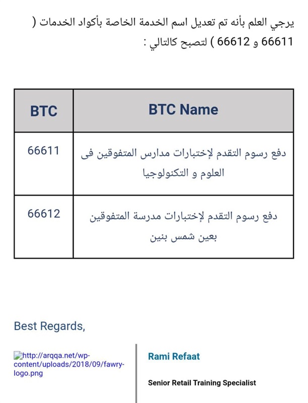 قال الدكتور رضا حجازي نائب وزير التربية والتعليم والتعليم الفني، إنه تقرر تعديل اسم الخدمة الخاصة بأكواد الخدمات لدفع رسوم التقدم لاختبارات مدارس المتفوقين في العلوم والتكنولوجيا، وكذلك دفع رسوم التقدم لاختبارات مدرسة المتفوقين بعين شمس.