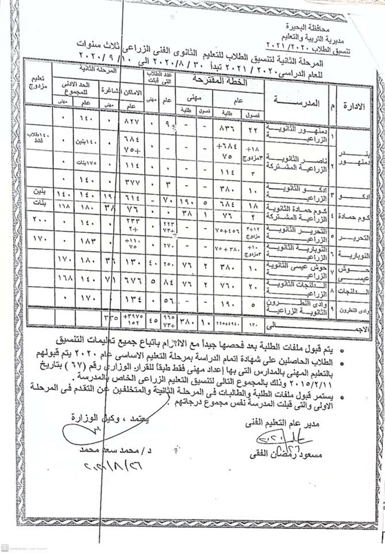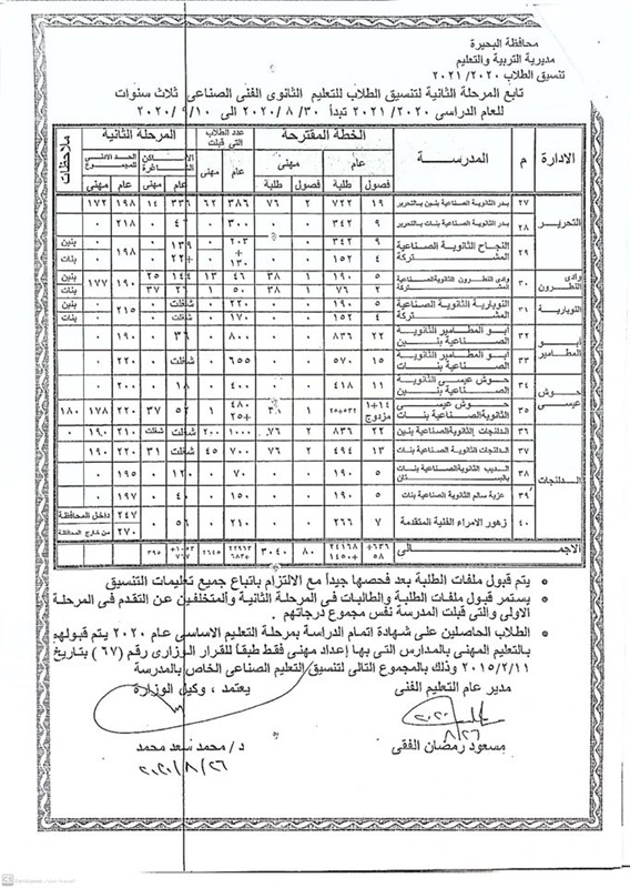 تنسيق القبول بالتعليم الفني المرحلة الثانية في البحيرة