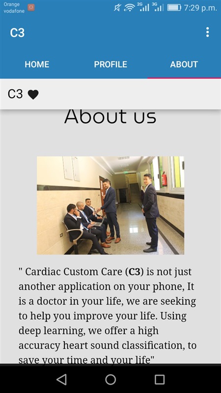 نفذ طلاب الفرقة النهائية في كلية الحاسبات والمعلومات جامعة كفرالشيخ من قسمي "علوم الحاسب وهندسة البرمجيات" مشروع تخرجهم بعنوان "العناية القلبية المتخصصة Cardiac Custom Care أو C3" والذي يقوم بالكشف على المرضى واكتشاف أمراض القلب.