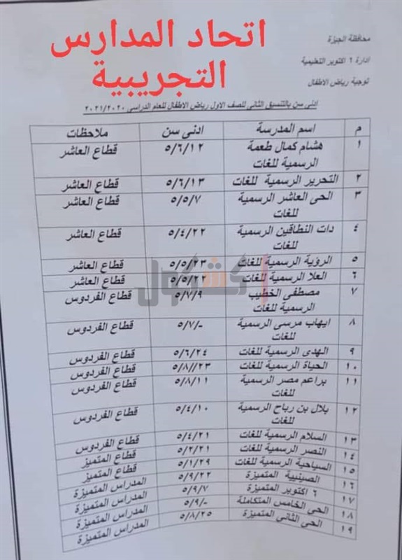 تعلن الإدارات التعليمية بمحافظة الجيزة، تنسيق المرحلة الثانية لقبول طلاب رياض الأطفال بالمدارس الرسمية لغات، ٢٠٢٠/٢٠٢0، وفقًا للنزول لسن الطلاب.