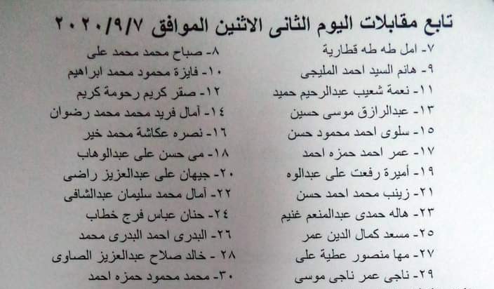 حيث تبدء المقابلات الشخصية العاشرة صباح الغد الإثنين الموافق