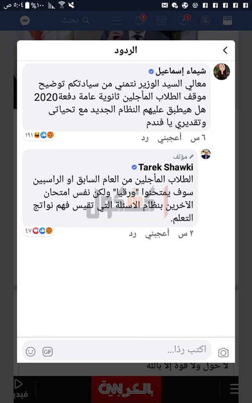 رد الدكتور طارق شوقى، وزير التربية والتعليم والتعليم الفني، على تعليق من إحدى متابعيه عن موقف طلاب المأجلين ثانوية عامة دفعة 2020.