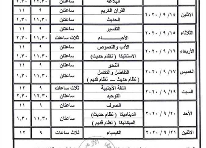 وجاءت جداول امتحانات الدور الثاني للشهادة الثانوية الأزهرية كما يلي: