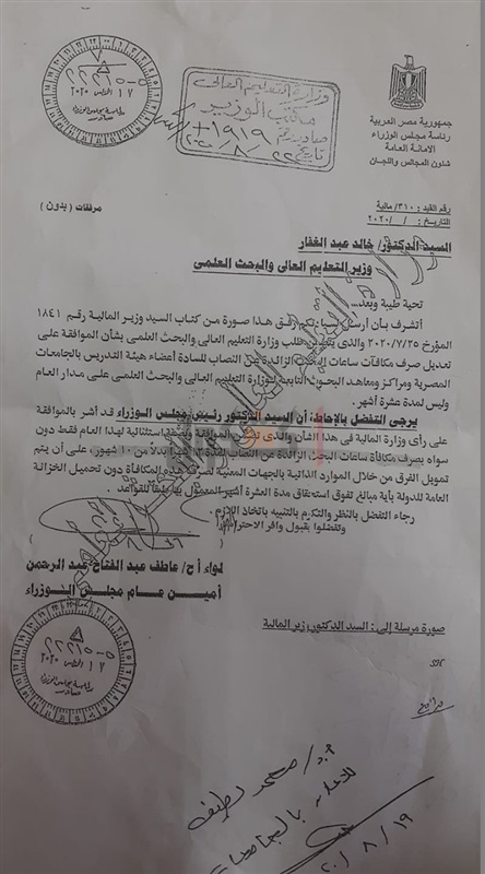 الحكومة توافق على تعديل مكافآت البحث الزائدة للأساتذة.. مستند