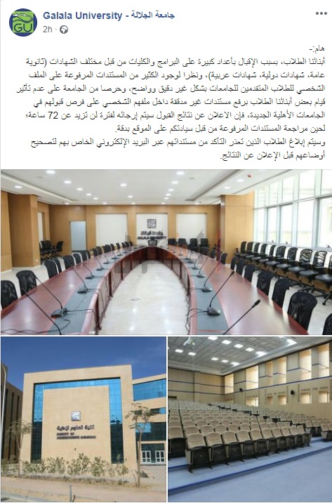 أعلنت الجامعات الأهلية عن إرجاء إعلان نتائج القبول، بجامعات الجلالة والملك سلمان والعلمين الدولية لفترة لن تزيد عن 72 ساعة لحين مراجعة المستندات المرفوعة من قبل الطلاب على الموقع بدقة.