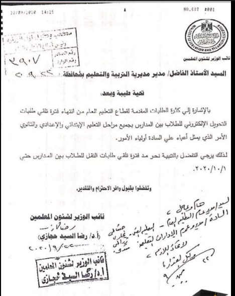 مد فترة تلقى طلبات التحويل الإلكتروني للطلاب بين المدارس بجميع مراحل التعليم الإبتدائي
