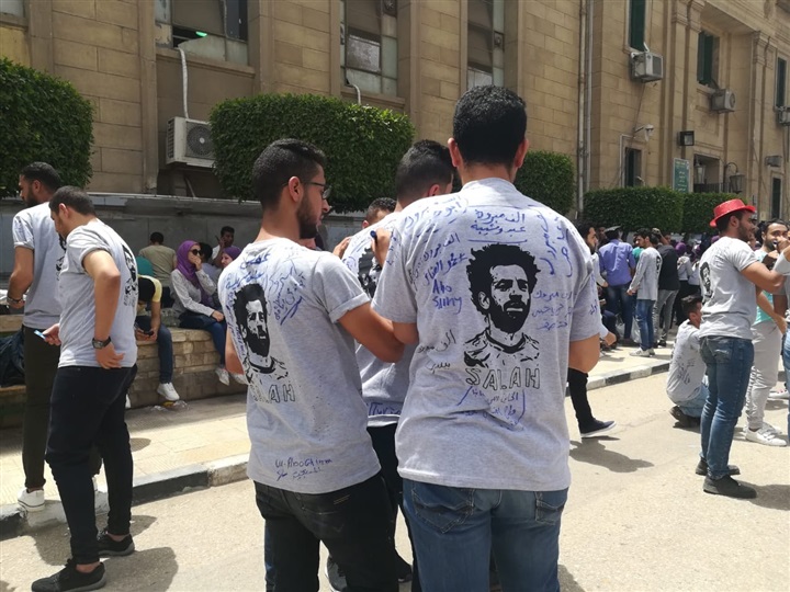 كلية التجارة جامعة القاهرة في طباعتهم صورة اللاعب محمد صلاح على "التيشيرت"
