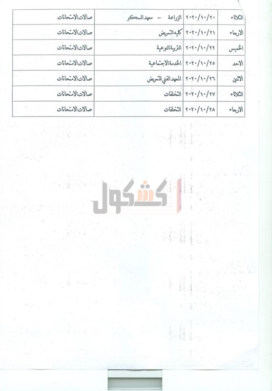 20/10لطلاب كلية الزراعة ومعهد السكر، والأربعاء 21/10 لطلاب كلية التمريض، وتقرر تحديد