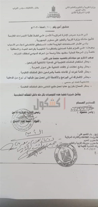 أصدرت الإدارة المركزية للأمن بوزارة التربية والتعليم والتعليم الفني؛ منشور رقم 10 لسنة 2020 حرصا علي تأمين منشآت العملية التعليمية.