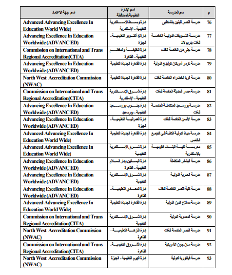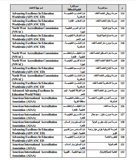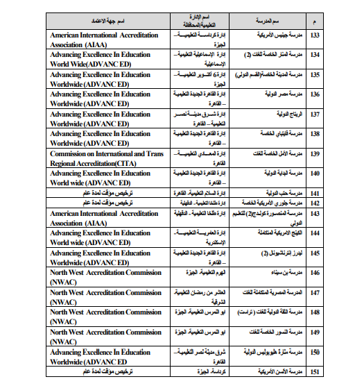 وتأتي أسماء الشهادات العربية والأجنبية داخل مصر على النحو التالي: