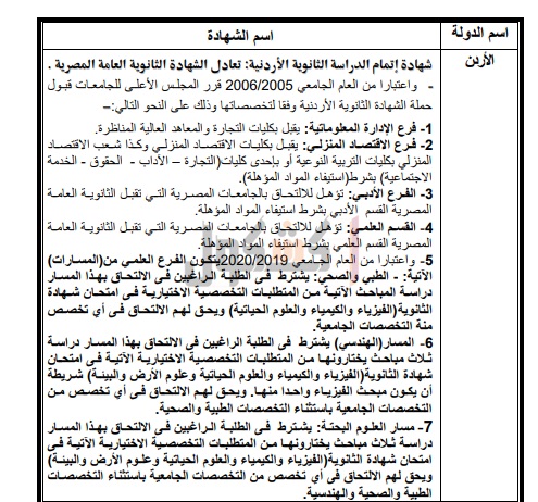 تنسيق الشهادة الأردنية المعادلة لشهادة الثانوية العامة المصرية